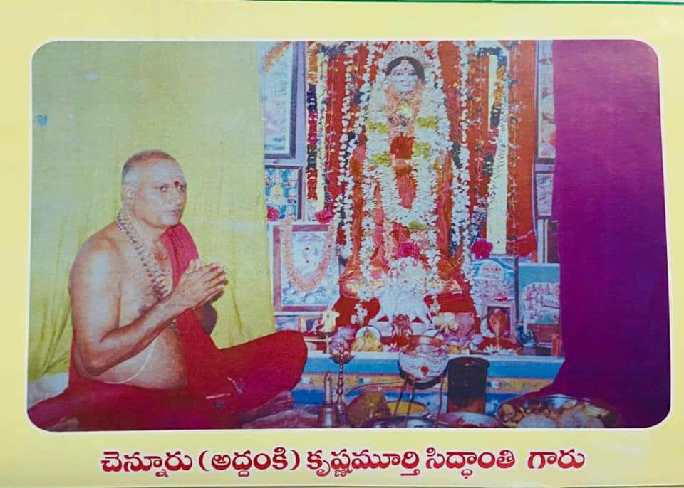 ఆ రోజులలోనే మరొక మహా మంత్ర సిద్ధుడు శ్రీ చెన్నూరు కృష్ణమూర్తి గారు మిత్రుడు వివేకానందం ద్వారా పరిచయం అయ్యారు. ఆయన అద్దంకిలో నివాసం ఉండటం వల్ల ఆయనను అందరూ “అద్దంకి కృష్ణమూర్తి” అని పిలిచేవారు. ఆయన ఒకసారి హైదారాబాద్ లో ఉన్న మా ఇంటికి వచ్చారు. ఏవో మాటలలో మా అమ్మ కుటుంబం ఎదుర్కొంటున్న ఇబ్బందుల గురించి ప్రస్తావించింది. ఆయన ఒక్క క్షణం కళ్ళు మూసుకొని ” రాజమండ్రిలో మీ ఇంటిలో 25 యంత్రాలు ఉన్నాయి కదా?” అని అడిగారు. నేను ఆశ్చర్యపోయాను. ఆ ఇంటి గురించి గతంలో వివరించాను. ఆ ఇంటిలో 24 గుమ్మాలు ఉన్నాయి. ప్రతి గుమ్మం మీద మా చిన్న తాత వేంకట వల్లభాచార్యులు గారు ఒక్కొక్క యంత్రం స్థాపించారు. లెక్క వేసుకుని చూసుకున్నాను. 24 యంత్రాలు ఉన్నాయి. ” 25 కాదు, 24 మాత్రమే ఉన్నాయి” అన్నాను. ” అవునా? గుమ్మాల మీద ఉన్నవన్నీ లెక్కేసి చెప్పావ్ సరే! మరి మీ చిన్న తాత మీ సింహ ద్వారం క్రింద పెట్టిన మత్స్య యంత్రం సంగతేవిటీ?” అని అడిగారు. నాకు మతి పోయింది. ఎక్కడ హైదారాబాద్? ఎక్కడి రాజమండ్రి? ఆ ఇల్లు, దానిలో ఎన్ని యంత్రాలు? ఎలా? ఎలా సాధ్యం? కళ్ళతో చూసినట్టు చెప్పేసే ఆ శక్తి ఏమిటి? నోట మాట రాలేదు! అలాటి మహా సిద్ధుడు జీవితంలో పరిచయం కావటమే ఒక భాగ్యం కాదూ?