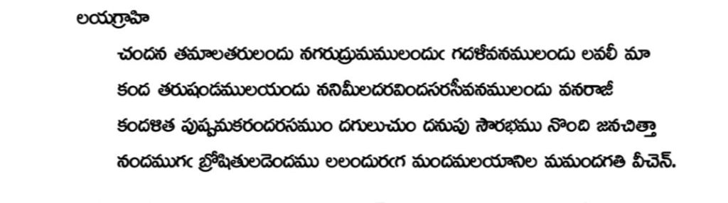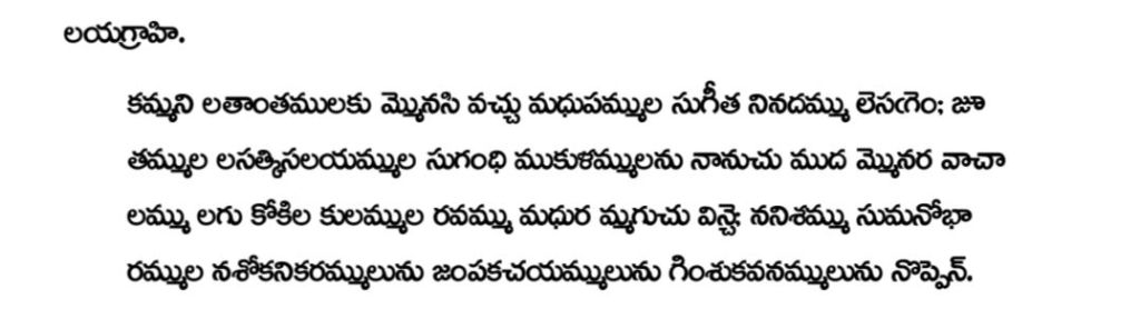 ఈ రెండు పద్యాలు నన్నయ గారు “లయ గ్రాహి” ఛందస్సులో వ్రాశారు! ఈ పోస్ట్ క్రింద ఆ రెండు పద్యాలూ అందించాను. చూడండి..